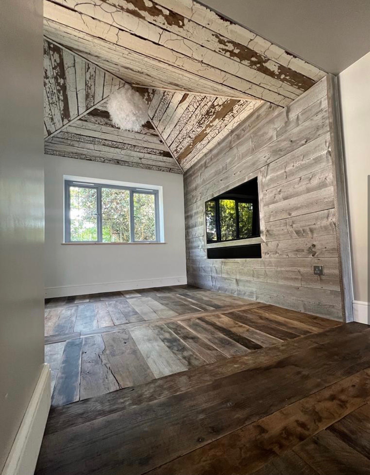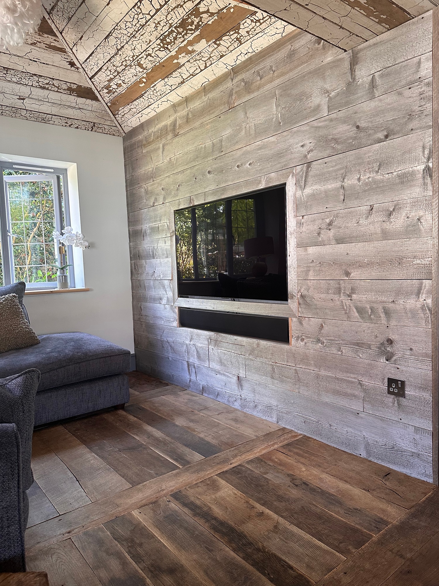 TV Room Renovation Project - Exterior and Interior Wall Cladding - Reclaimed Solid Oak Flooring